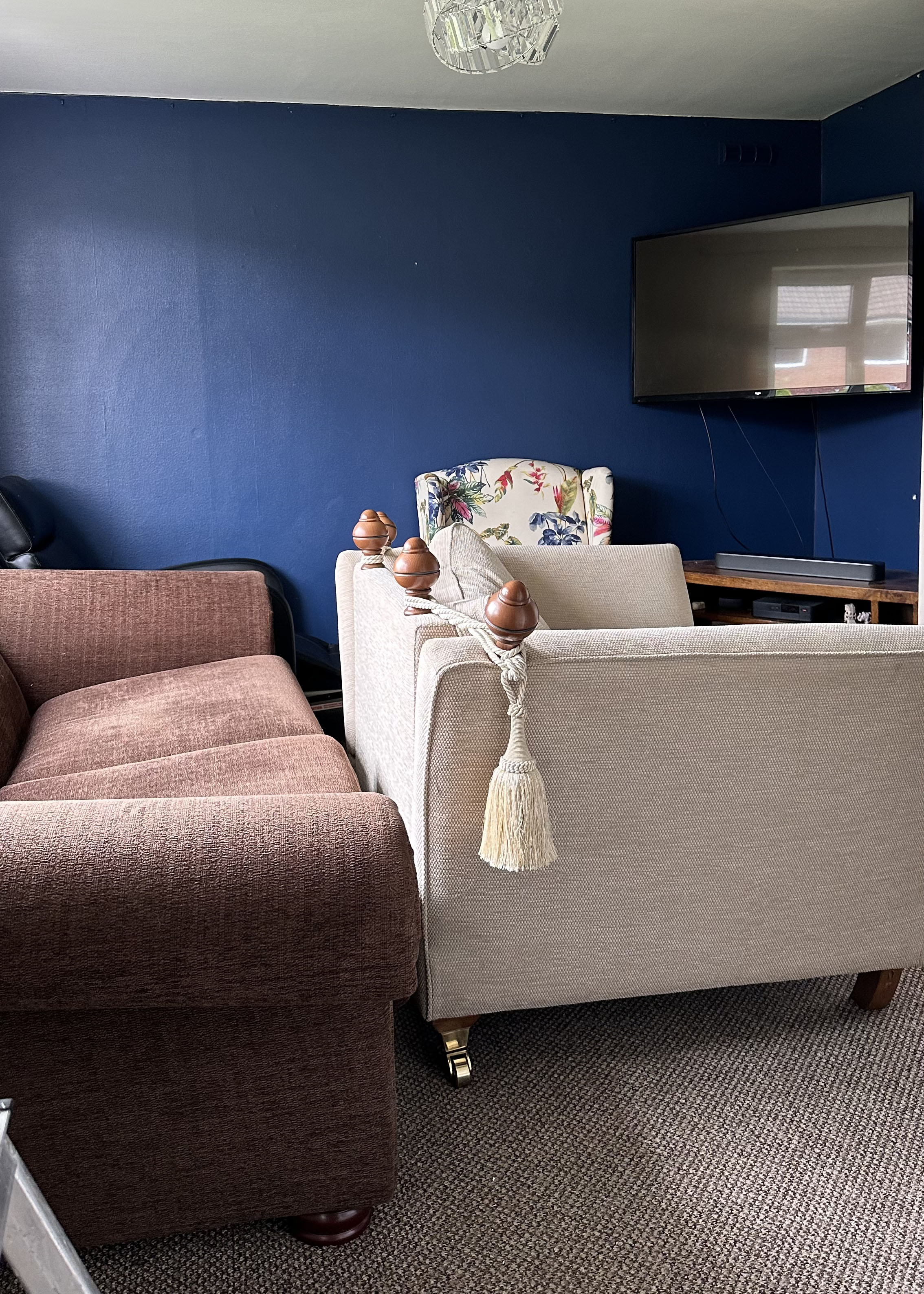 A client came to me feeling stuck for inspiration with a family event only days away. She had chosen a beautiful wallpaper but wasn’t sure how to bring the whole room together. I built the colour scheme around it, worked intensively for three days, and transformed the lounge using pieces she already owned. With a small budget and a tight deadline, the finished space felt fresh, cohesive, and ready to welcome her guests.